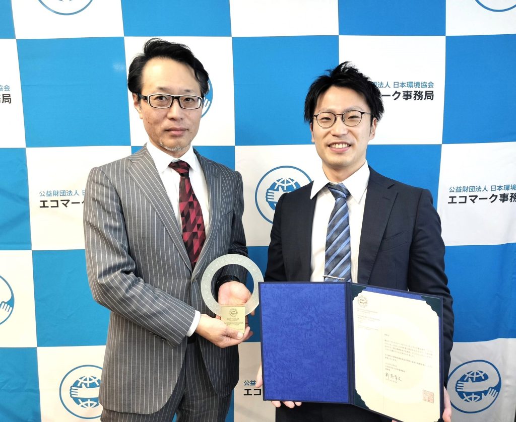 「エコマークアワード」は、日本環境協会が 2010 年度に創設した表彰制度で、環境配慮商品の普及に関する優れた事例を広く公表するとともに、同協会の環境ラベル「エコマーク」商品のより一層の普及拡大を通じて、持続可能な社会の実現に寄与することを目的としています。その中で「ベストプロダクト」は、2023、24年度に認定された「エコマーク」認定商品の中から、特に環境性能や先進性、エコフレンドリーデザインなどに優れた製品・サービスが表彰されます。