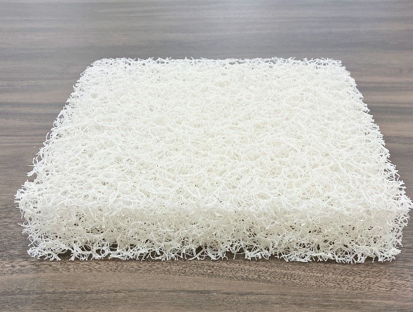 当社が製造販売する熱可塑性ポリエステル系エラストマー「ペルプレン®」を繊維状にして、立体的に接合した三次元網状繊維構造体。軽量・高反発で、耐久性や通気性に優れることから、一般用・業務用寝具、介護用マットレス、新幹線などの鉄道車両の座席シート、オートバイやベビーカーなど幅広い用途で採用されています。