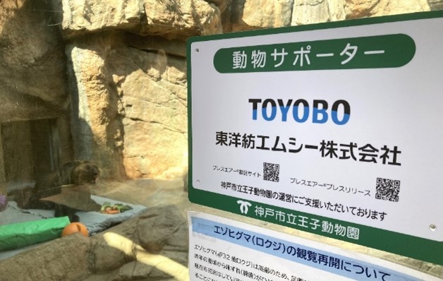 東洋紡エムシー株式会社(本社:大阪市北区、代表取締役社長執行役員CEO:森重 地加男、以下「当社」)はこのほど、神戸市立王子動物園の「エゾヒグマ」を支援する「動物サポーター」に就任し、獣舎にプレートが掲示されました。
