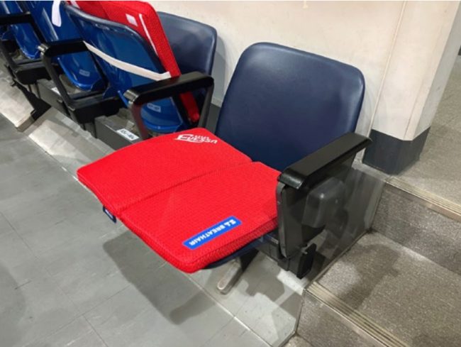 2 階指定席(ホーム側)に、「ブレスエアー®」使用のポータブルクッションを敷いた座席を各試合 22 席ずつ設置します。試合後にはクッションを持ち帰ることができ、ご自宅でも「ブレスエアー®」の快適な座り心地を味わえます。